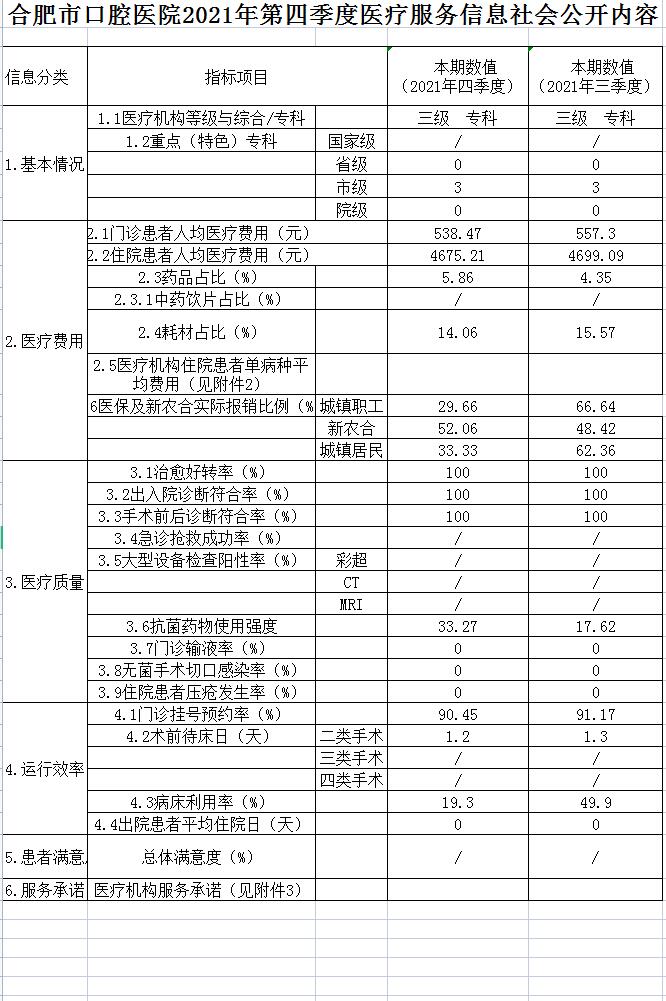 合肥市口腔醫(yī)院2021年第四季度醫(yī)療服務(wù)信息社會(huì)公開內(nèi)容