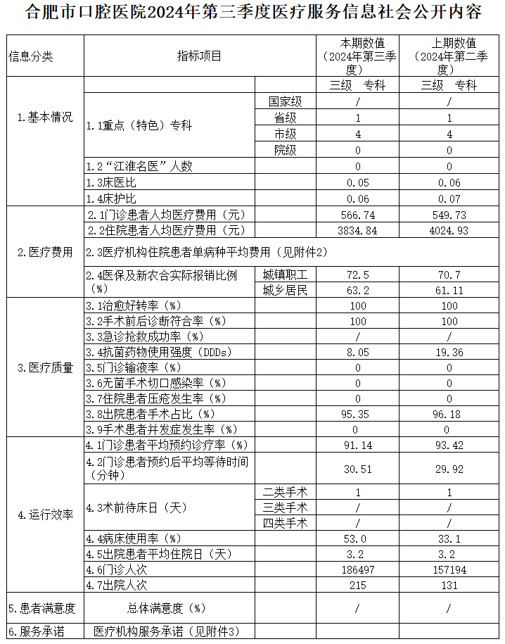 合肥市口腔醫(yī)院2024年第三季度醫(yī)療服務(wù)信息社會(huì)公開內(nèi)容